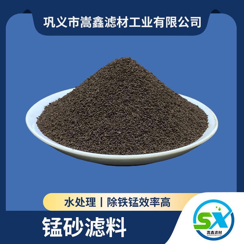錳砂除鐵除錳濾料是一種在水處理行業(yè)中廣泛應(yīng)用的高效凈水材料。它主要由天然錳礦石經(jīng)過破碎、篩選、清洗等工藝加工而成,外觀多呈深褐色或紅褐色,顆粒均勻,表面粗糙多棱角,具有良好的機(jī)械強(qiáng)度和化學(xué)穩(wěn)定性。錳砂濾料的核心成分是二氧化錳(MnO₂),這是其能夠去除水中鐵、錳元素的關(guān)鍵所在。二氧化錳含量通常在20%至45%之間,不同含量的錳砂濾料適用于不同的處理需求。當(dāng)含鐵、錳的原水通過錳砂濾層時(shí),濾料表面的氧化錳作為催化劑,促進(jìn)水中溶解氧對二價(jià)鐵(Fe²⁺)和二價(jià)錳(Mn²⁺)離子的氧化反應(yīng)。具體來說,二價(jià)鐵離子在錳砂濾料的作用下被氧化成不溶解的三價(jià)鐵(Fe³⁺)化合物,而二價(jià)錳離子則被氧化成四價(jià)錳(MnO₂)沉淀物。這些生成的化合物逐漸沉積在濾料表面及濾層間隙中,形成一層具有過濾作用的“鐵錳質(zhì)濾膜”。這層濾膜不僅增強(qiáng)了濾料的吸附能力,還進(jìn)一步提高了對水中懸浮物、膠體等雜質(zhì)的去除效果。