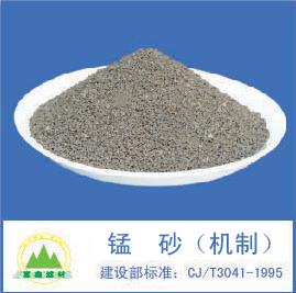 用于地下水除鐵/除錳的天然錳砂濾料應符合建設部水處理濾料《CJ/T3041-2005 》標準規(guī)定;其錳的形態(tài)應以氧化錳為主。含錳量(以MnO2計,下同)不應小于35%的天然錳砂濾料,既可用于地下水除鐵,又可用于地下水除錳;含錳量為20%~30%的天然錳砂濾料,只宜用于地下水除鐵;含錳量小于20%的錳礦砂則不宜采用。宜優(yōu)先采用經(jīng)過科學試驗或生產(chǎn)使用證明能獲得良好除鐵和除錳效果的天然錳砂品種作濾料。